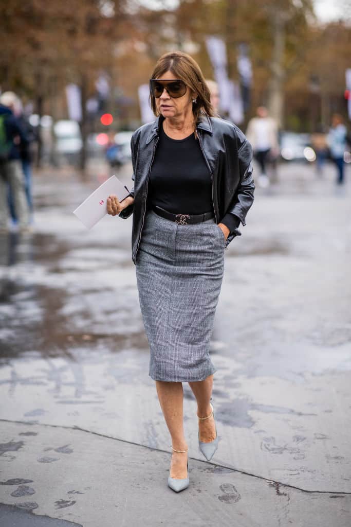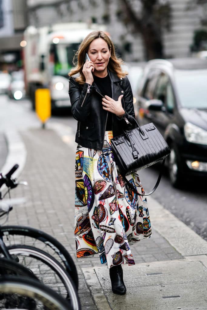 Un chemisier fluide, une jupe midi ample, et l’ensemble prend un tout autre relief une fois associé à la veste en cuir. À 50 ans, le secret réside dans le choix de la coupe : la veste doit tomber juste sous la taille de la jupe pour harmoniser la silhouette. Ce détail, loin d’être anodin, confère de l’élégance à la tenue et évite tout effet tassant. On retrouve ici la force du vêtement bien pensé : il accompagne, valorise, sans jamais écraser. C’est l’assurance d’un look à la fois raffiné et accessible.